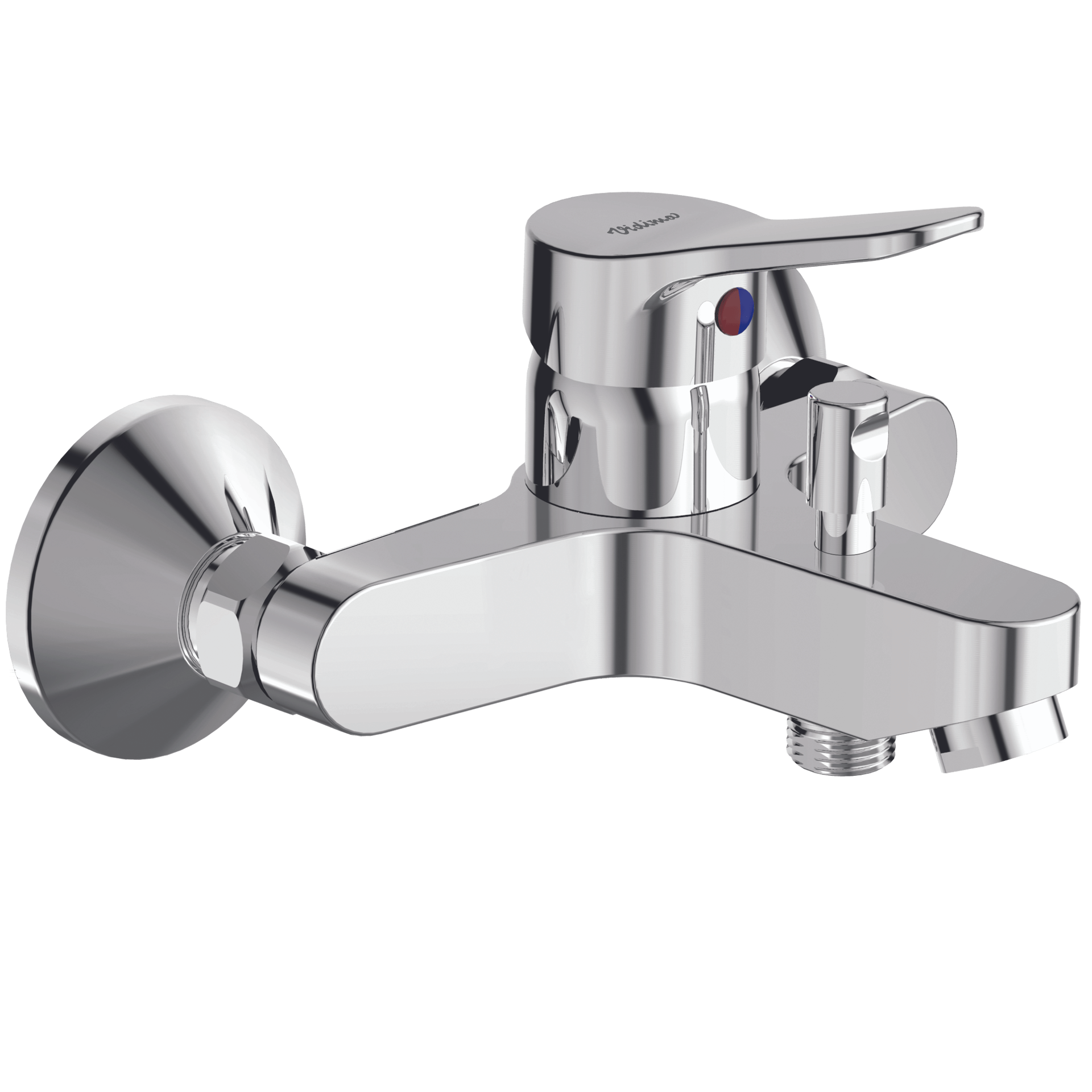 35 mm керамичен затварящ механизъм с ограничител на топла вода Месингово лято тяло Метална ръкохватка с индикатор за топла и студена вода на капачката Възвратен клапан Стандартно присъединяванес S-холендри Perlator аератор Автоматичен разпределител