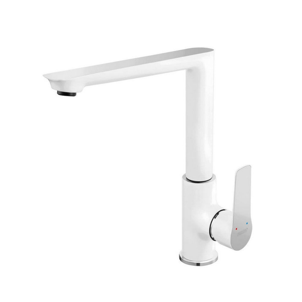 Смесителят ADORE бяло-хром BDR4 е стоящ смесител за баня с изключително нежен дизайн и форми. Благодарение на много по-високата му основа, той е много удобен при използване, а с издълженият му чучур, ще избегнете излишното мокрене на мивката и около нея. Със смесителя за умивалник ADORE бяло-хром BDR4 можете да миете всякакви по-големи съдове удобно и лесно. Има странична ръкохватка с индикация за топла и студена вода. Модела е в много елегантен бял цвят и малки елементи в цвят хром. Този интересен контраст ще го накара да изпъкне и да подчертае модерният интериор на вашата кухня или баня. Смесителят за умивалник ADORE бяло-хром BDR4 е проектиран с керамичен регулатор и гъвкави връзки G3/8-M10x1. Той има добавен аератор M24x1, за регулиране на потока, за повече икономия на вода при използването му и по-малки сметки за вода. Смесителят ADORE бяло-хром BDR4 е прекрасен, висококачествен избор, който няма да остане незабелязан от гостите ви, а вие ще получите удобство, комфорт и много стилен външен вид на вашата баня.