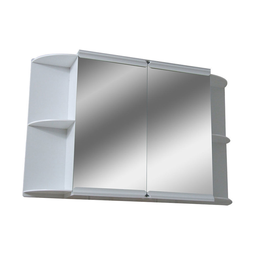 - водоустойчив- полистирол- бял- две огледални вратички + две странични етажерки- два вътрешни рафта
