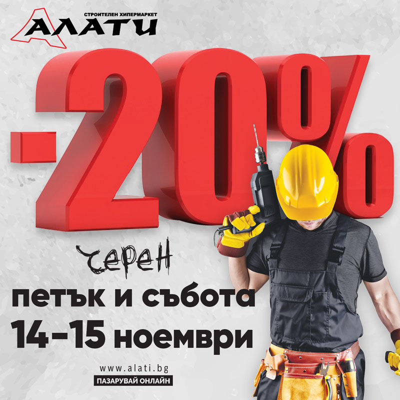 В тези два дни всички клиенти ще могат да се възползват от 20% отстъпка. Събитието ще продължи в двата дни – от 8:00 до 20:00 ч., а намалението ще бъде достъпно и онлайн на www.alati.bg