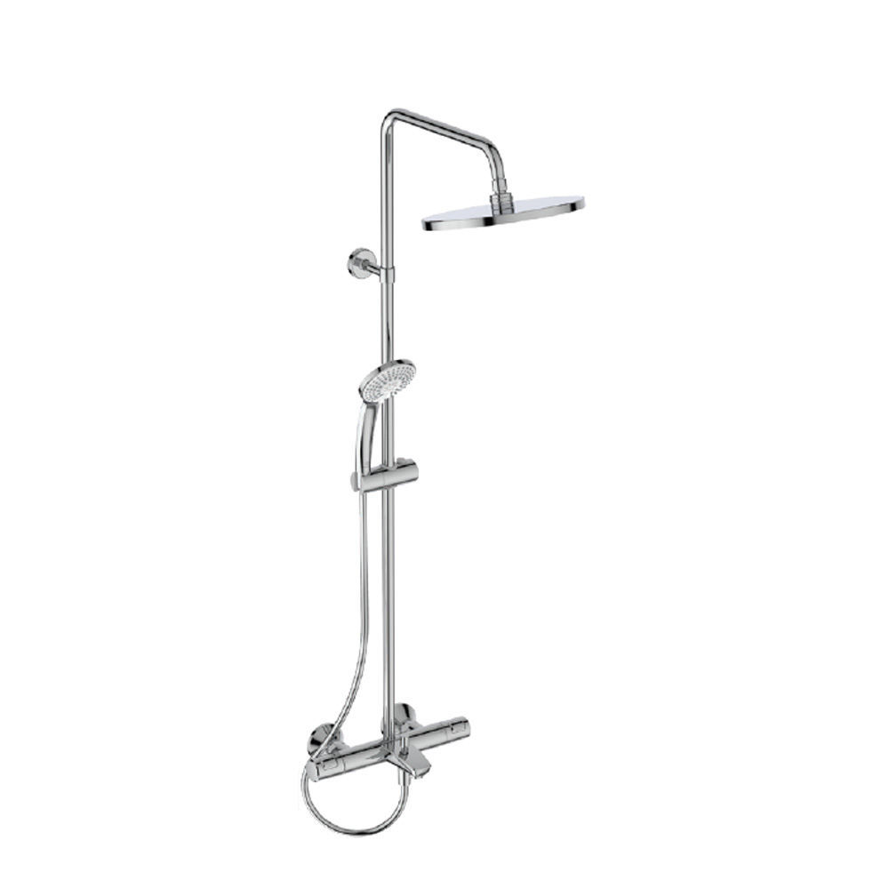 Ceratherm T25 е душ система, която ще ви осигури много комфорт, докато взимате вана или душ. Душ системата CERATERM T25 е с термостатен стенен смесител и скрито присъединяване с S-холендри и конусни розетки. Има вграден разпределител в ръкохватката и и в чучура. Температурата на водата в термостатичните смесители се задава предварително и остава постоянна по време на употреба. Ръкохватките са пластмасови, хромирани с температурен ограничител на 40оС и настройка на дебита с бутон за ограничаване до 50%. Термостатичният механизъм на свой ред автоматично регулира притоците на топла и студена вода, помагайки да намалите водния разход. Моделът е в цвят хром, който ще се впише във всеки интериор. Душ системата CERATERM T25 има кръгла душ глава с диаметър 250мм и ограничител на дебита 12л/мин, както и 3F Idealflex ръчен душ с диаметър 100мм, които е с ограничител на дебита на водата 8л/мин. Огромен плюс е Cool body технологията, която ще ви предпази от прекомерно нагряване на външните повърхности, предпазвайки децата от изгаряне.