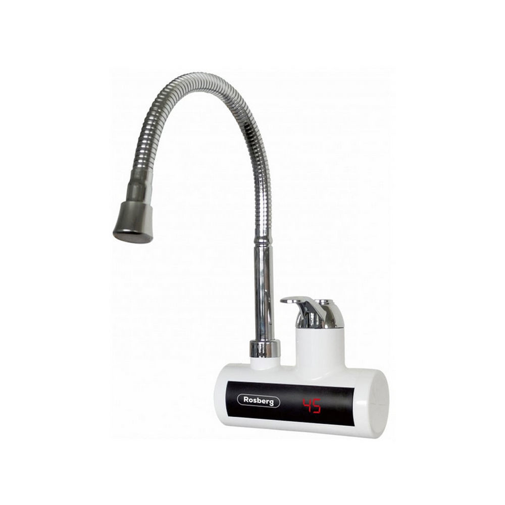 Нагревател за вода Rosberg R57100BF - стенен - гъвкъв чучур - LED дисплей - 3kW - бял