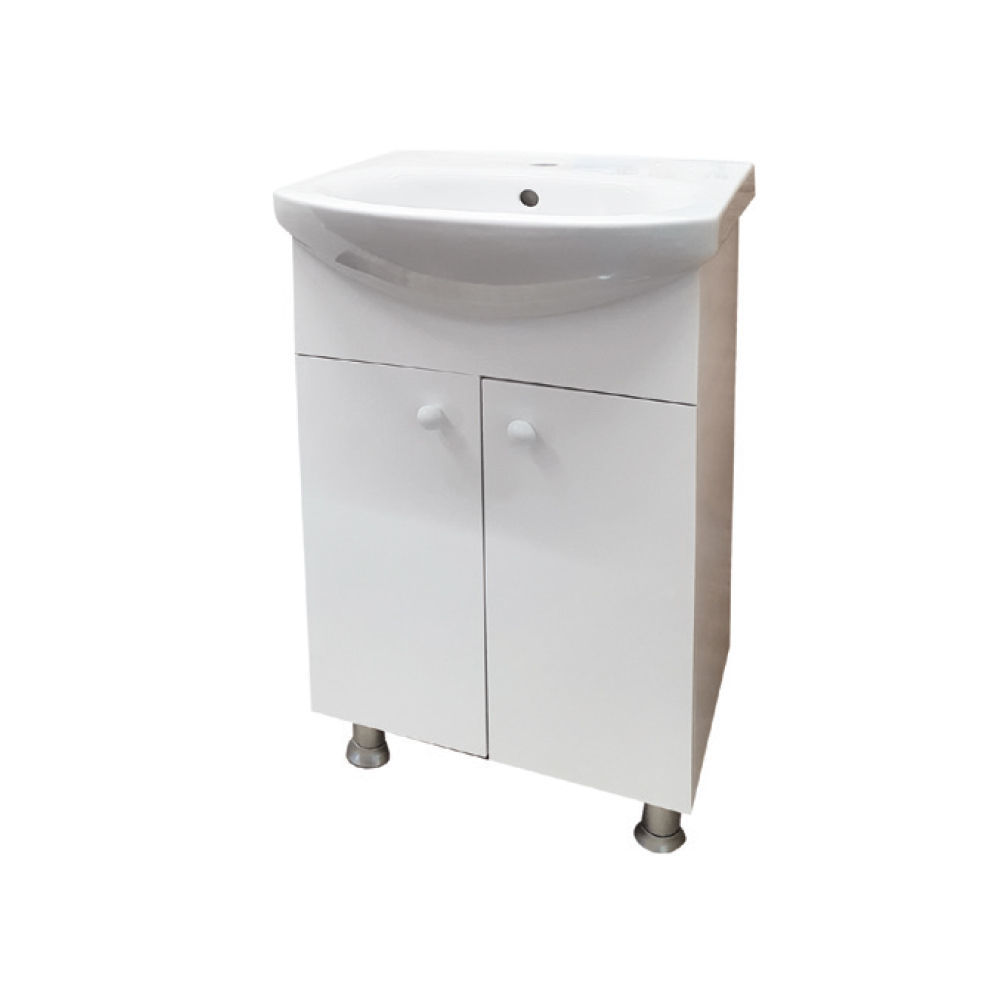 Шкафа за баня МИМИ 50 см е изключително подходящ шкаф за малки бани, който осигурява компактност и в същото време има прекрасен изчистен и стилен дизайн. Класическият бял цвят позволява изключително лесното му съчетаване с други мебели за баня от нашия каталог. МИМИ 50 см има много удобен шкаф за съхранение на обемни продукти за баня или препарати. Шкафът е с бели кръгли дръжки за повече елегантност и цялостно луксозно оформление. Моделът е с крачета, които могат да се регулират за по-голямо удобство. Изработен е от водоустойчиво PVC и има панти от неръждаема стомана, за да му се радвате още по-дълго време, без да се промени прекрасният му външен вид. В комплект с долният шкаф МИМИ 50 см е мивка НЕО 50см, която се вписва идеално в дизайна на шкафа. Подарете си удобство и красив външен вид на вашата баня с водоустойчивия шкаф за баня МИМИ 50 см.