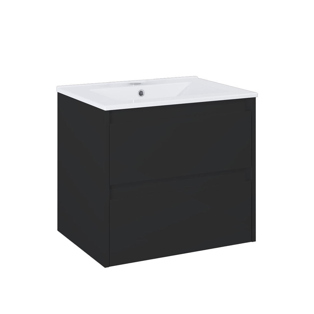 За модерна и практична баня точният избор е конзолният шкаф CLAUDIA UNIK 60см. Той е в изключително интересен и стилен черен цвят с матово покритие. Изработен е от влагоустойчив MDF материал. Конзолният шкаф CLAUDIA UNIK има две чекмеджета със Soft Close механизми за плавно затваряне. Ширината от 60см дава възможност да приберете много от своите аксесоари и принадлежности за баня, а липсата на крачета допринася за много по-лесното почистване на пространството под него. Към конзолния шкаф има бял умивалник HEBE UNIK, изработен от порцелан.