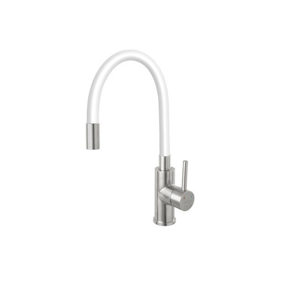 Смесител за кухня ZUMBA BZA4WSS - инокс - стоящ - бял чучур - Ferro