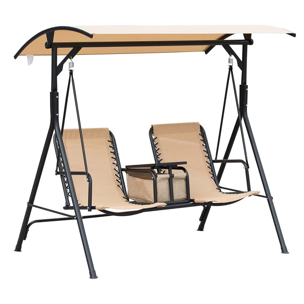 Люлка градинска с две седалки и маса 196x130x176см бежова до 180кг