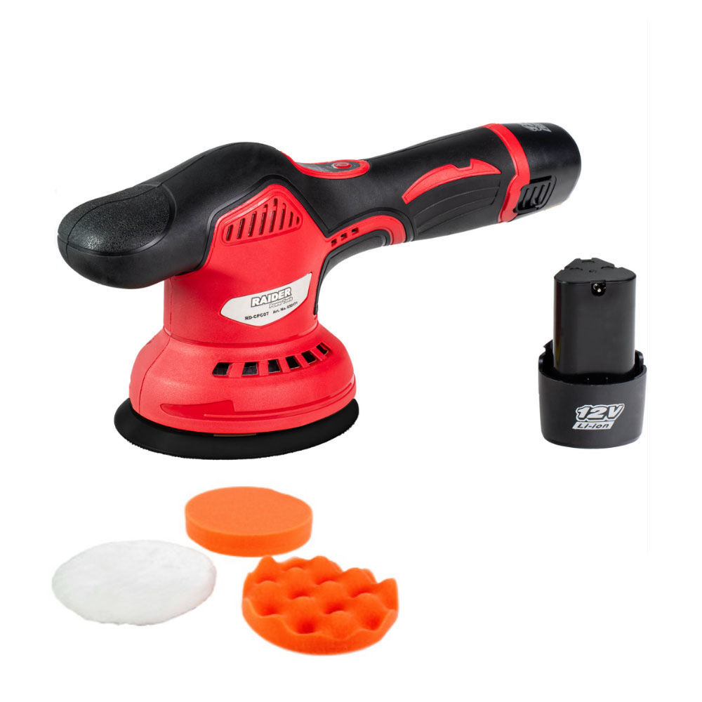Полирмашина Raider RD-CPC07 - 12V, 2xAh Li-ion - Диск: Ф125мм - Макс. обороти: 300-2400 min-1 - VELCRO основа - Дисплей