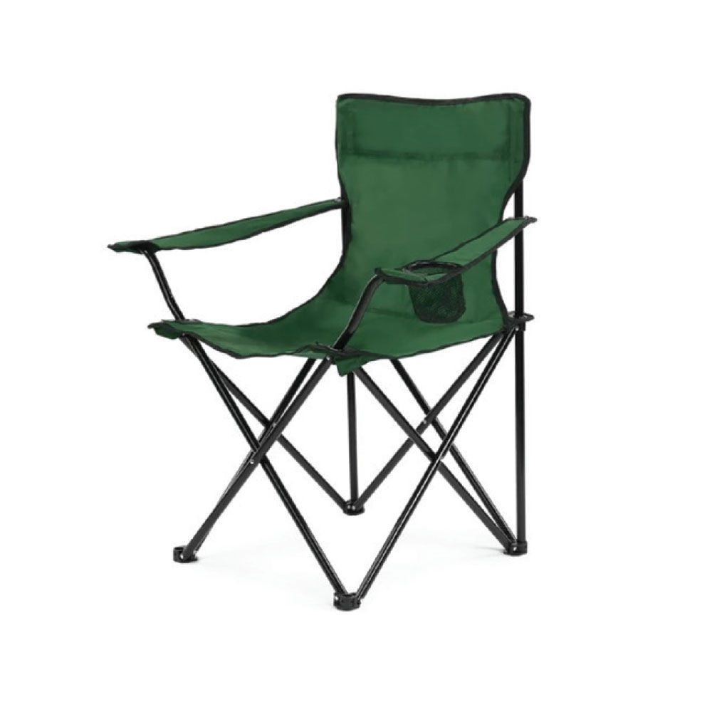Сгъваем стол с поставка за чаша - Размер: 80х52х81 cm - Товароносимост: до 110 кг - Цвят: зелен - Отличен комфорт