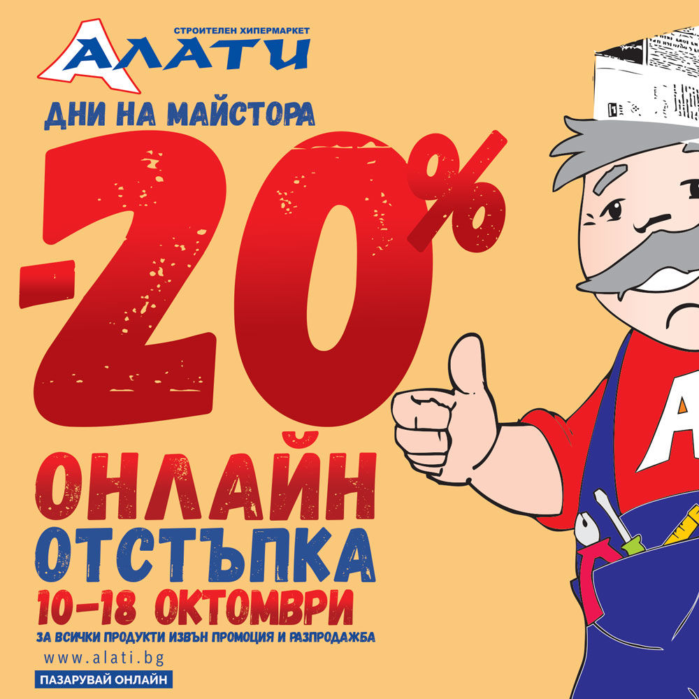 От 10 до 18 октомври можете да ползвате и 20% отстъпка онлайн www.alati.bg.
