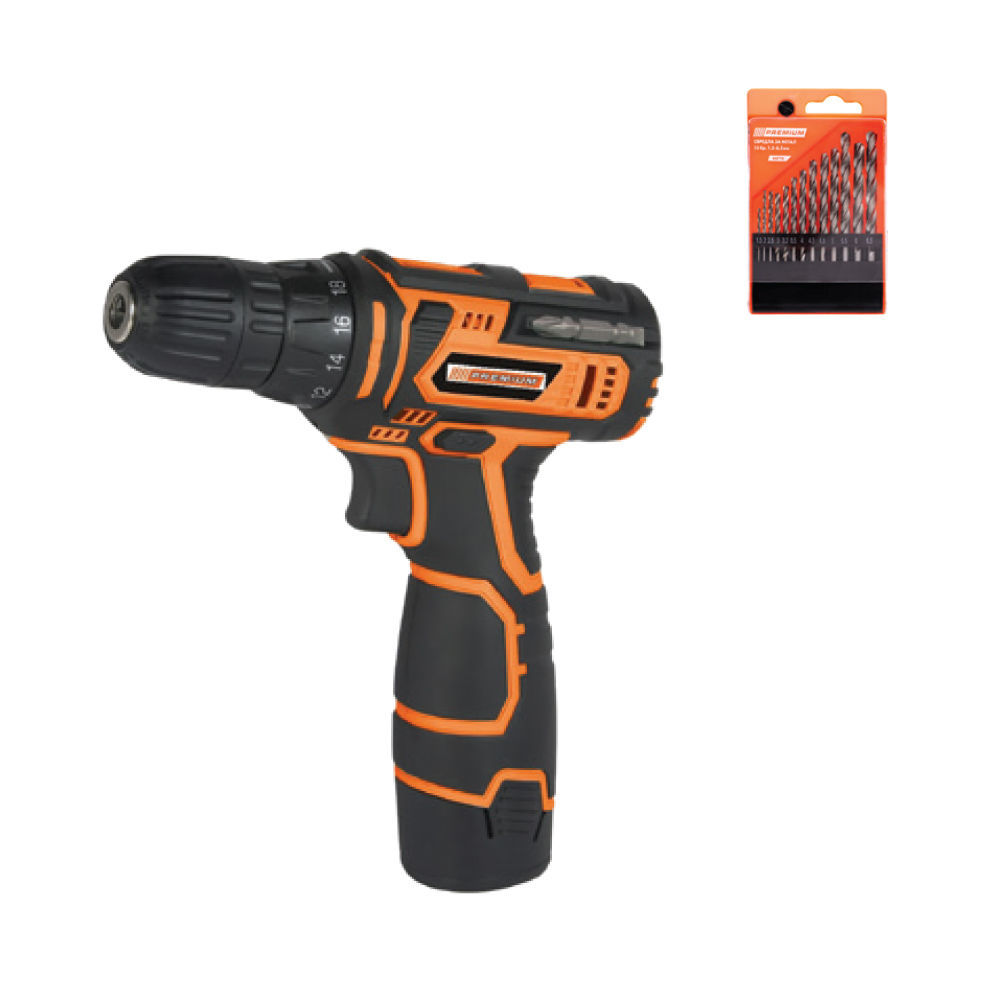 Акумулаторна Бормашина PREMIUM - Мощност: 12V - Батерия: Li-ION 1.5Ah - Макс. въртящ момент: 20 Nm - Обороти на празен ход: 0-650 об./мин. - Време за зареждане: 3-5 часа - 1 батерия и зарядно