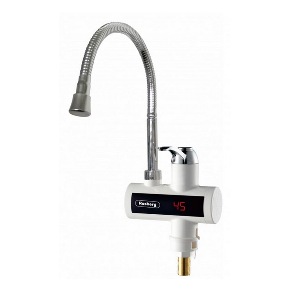 Нагревател за вода Rosberg R57100BFW - за плот - гъвкъв чучур - LED дисплей - 3kW - бял